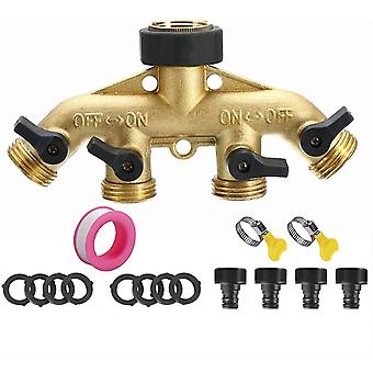 Faucet Y Selector 4 Outlet Valves, Brass Faucet Connector 4 Way Distributor Hose Splitter Splitter F