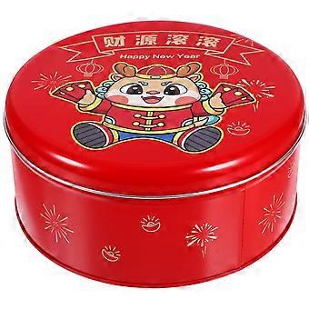 Festive Cookie Tins New Year Tinplate Cookie Tin Candy Biscuits Treat Box Snacks New Year Celebration Multi Color Round 1Pack