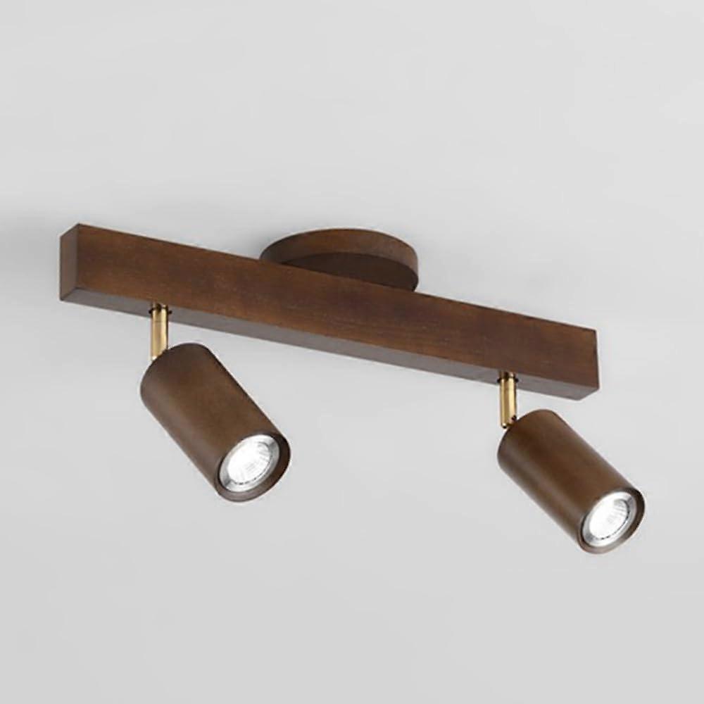 Fixed LED Track Lighting Fixture Walnut Finish Ceiling Spotlight 350Deg+90Deg Foldable Kitchen Track Lights 6000K 2Light