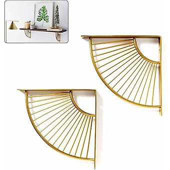 Floating Metal Golden Fan Shaped Triangle Shelf Bracket,Set of 2 Hanging Shelving Wall Corner Bracket for Restaurant/Office/Home Decoration (15cm/5.9i