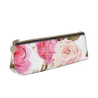 Floral-Design Pencil Case - Zippered Slim Organizer Suitable for Writing Instruments and Cosmetics