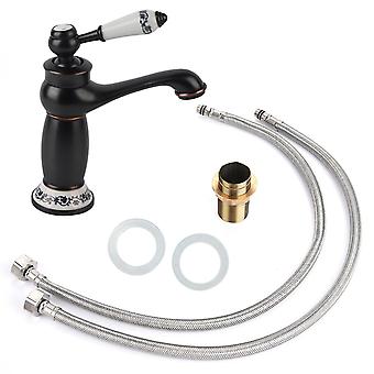 Floral Pattern Single Handle Mixer Tap for Cold/Hot Water, for Bathroom Sink (Black)