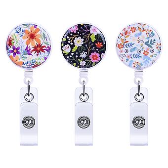 Flower Pattern Id Card Holder With Clip