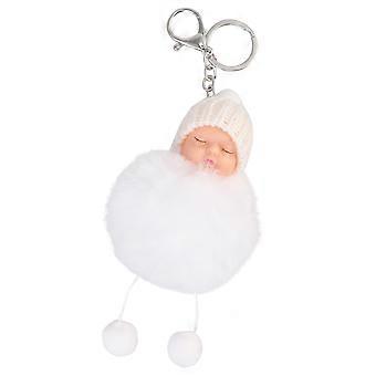 Fluffy Hairball Key Chain Doll Ornament For Daily Use And Gift Giving In White 1Pack