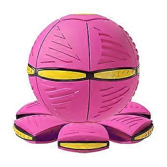 Flying Saucer Ball Magic Deformation Ball with Light Decompression Flying Flat Throw Disc Balls Parent Child Interactive Toy with Light Rose Red