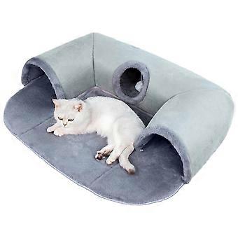 Foldable Cat Tunnel, Washable UShaped Cat Cave with Removable Bed Plush Ball