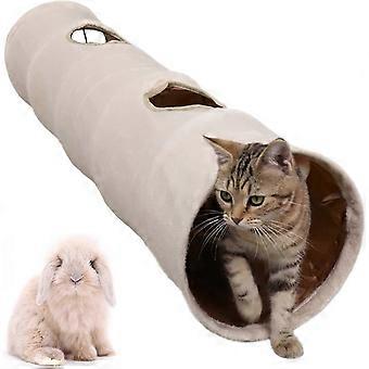 Foldable Cat Tunnel with 2 Holes and Ball for Cats Kittens Rabbits Guinea Pig 120*25CM Beige