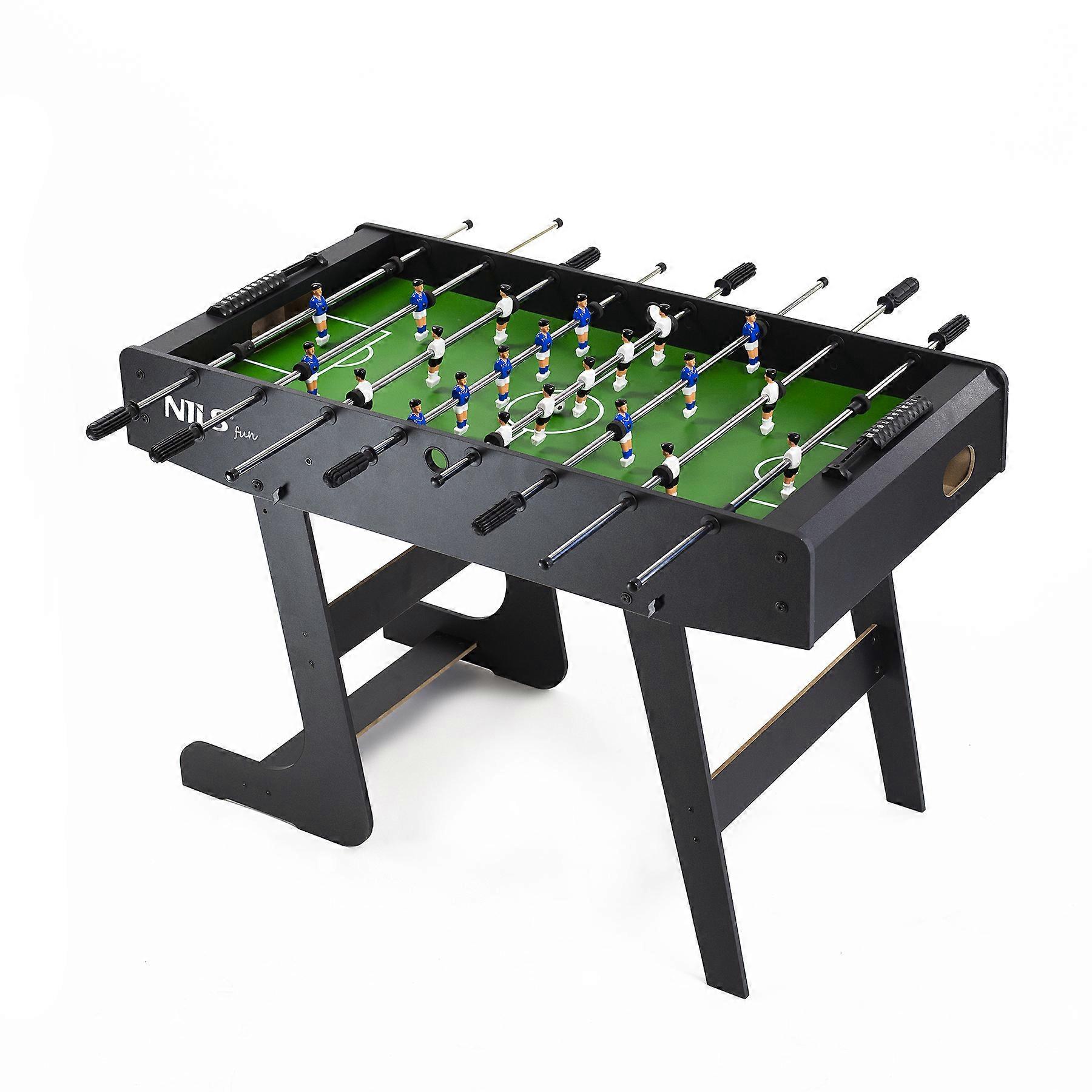 Upplev spännande gameplay med vårt fotbollsbord, designat för smidig, realistisk action. Den är utformad för hållbarhet och lovar oändligt roligt för både barn och tonåringar. Njut av smidigt och realistiskt spel med precisionskonstruerad design. Dra fördel av en hållbar konstruktion som säkerställer långvarig användning. Sätt ihop enkelt och förvara bekvämt med en vikbar design. Spåra poäng utan ansträngning med en integrerad träffräknare. Inkluderar två bollar för omedelbart spel. Ta med spänningen från en fotbollsmatch in i ditt hem med detta sakkunnigt utformade fotbollsbord. Perfekt för familjesammankomster eller vänliga tävlingar, det är ett måste i alla spelrum. Hämta din idag Specifikationer Material: MDF Mått: Längd 121 cm, Bredd 61 cm, Höjd 79 cm Vikt: 17 kg Innehåller: 2 bollar Garanti: 24 månader
