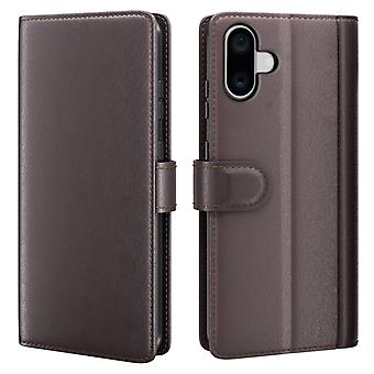 For iPhone 16 Plus Case Wallet Genuine Split Leather Phone Cover Magnetic Clasp - Brown