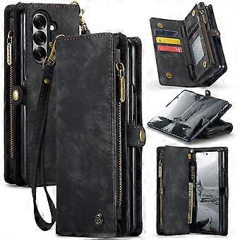 Für Samsung Galaxy Z Fold7 Kunstleder 008 Multifunktion Hülle Schwarz