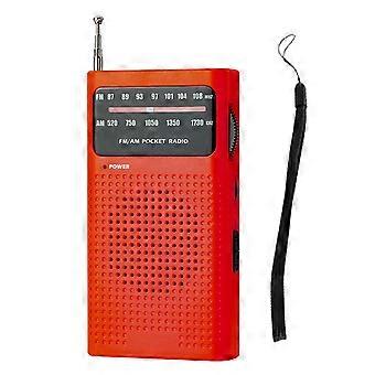 Full-Band Small Portable Radio Mini AM FM Pointer Pocket Radio for Running Compaing Travel Analog Red