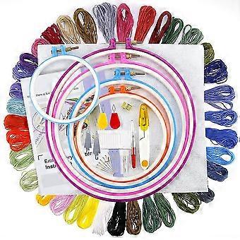 Full Range Of Embroidery Starter Kit,5Pcs Plastic Embroidery Hoop,50 Color Embroidery Threads,Cross