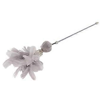 Funny Cat Teaser Wand Toy - Feather Bell Interactive Bite Resistant Cat Stick for Pet Cats (Grey)