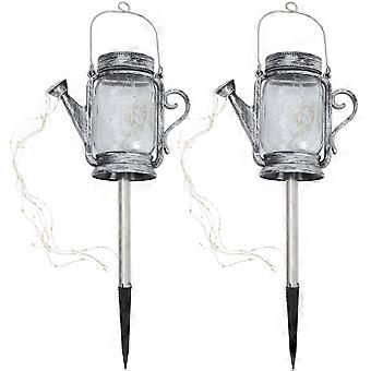 Garden Solar Light Kettle Shaped Jar Lid Fairy String Light Silver 15.5X9.75X9.75CM Solar Power 2Pcs