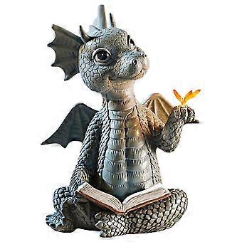 Garden Statue Lifelike Decorative Resin Butterfly Little Dragon Reading Sculpture Garden Statue