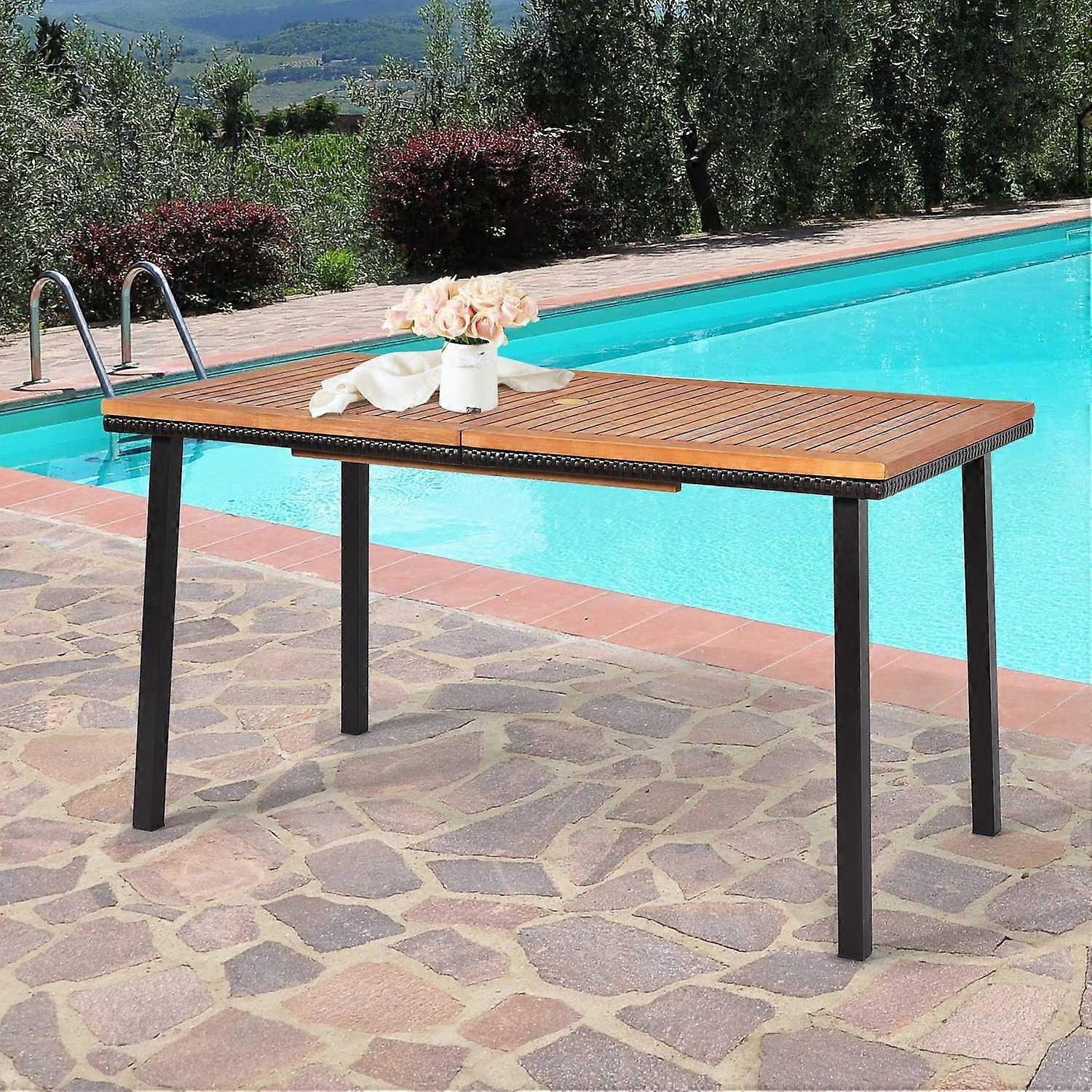 Trädgårdsbord matbord med paraplyhål träbord uteplatsbord akaciaträ 140 x 75 x 76 cm natur
