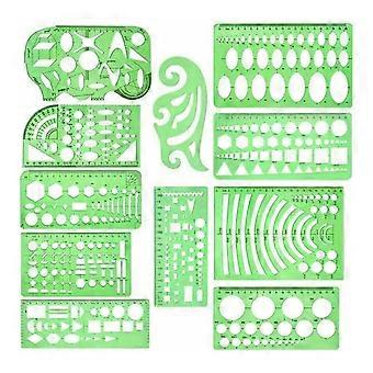 Geometric stencils, geometric drawing templates, clear measurement templates for drawing, engineering, drafting, construction work, 11 pieces