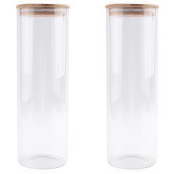 Glass Containers Set of 2 with Lids-Food Storage Canisters for Pasta