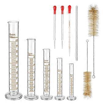 Glass Graduated Measuring Cylinders Set,Premium Borosilicate Cylinders Kit with 3 Pipettes+2 Brushe
