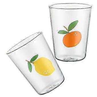 Glass Mugs Fresh Fruit-Printed Drinks Glass Mugs Home Use Assorted Color 2Pcs