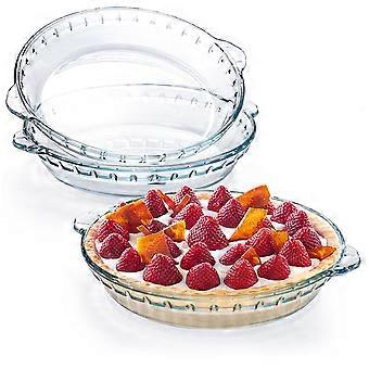 Glass Pie Plates 3 Pack with Handles, 9 Inch Clear Baking Dishes, Durable Glass Serving Plates for Snacks and Desserts