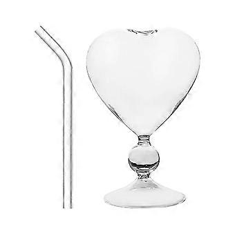 Glass Straw Cup Heart Shaped Wine Glass Cup For Bar Use 1 Set