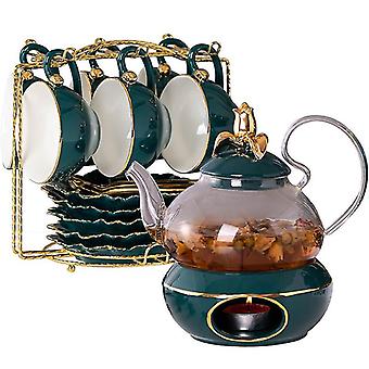 Glass Teapot And Ceramic Green Lid Heat Candle Holder Teapot Set (6 Cup And Teapot Set)