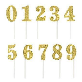 Glitter Paper Cake Toppers for Cupcake Decoration with Golden Numbers 09 Safe for Cake Picks