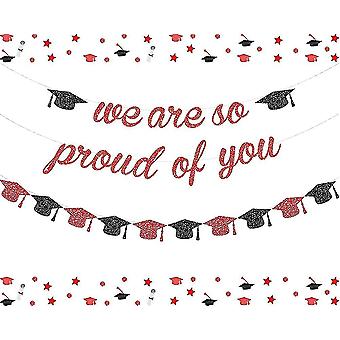 Glitter We Are So Proud Of You Banner Red - Red And Black Graduation Supplies Grad Cap Garland For Class Of 2022 Party. Congratulations Grad Party Dec