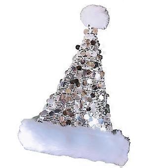 Glittering, large sequin Santa hats with faux furry edge, formal event hat, festival props, hat for holidays silver