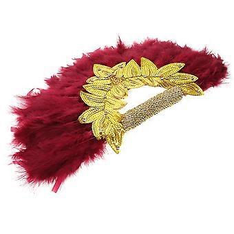 Gold Lace Plume Fan Hand Held for Cooling Use Dark Red 1 Piece Bride Hand Fan