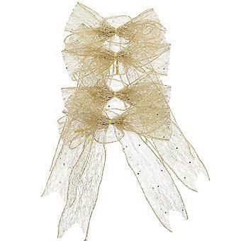 Golden 4Pcs Large Christmas Bows for Christmas Party Decoration Eye-Catching Design Featuring Durable Polyester and Pvc