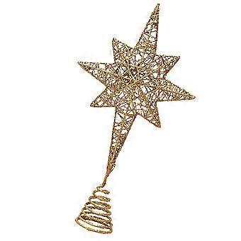 Golden 8 Pointed Star Christmas Tree Topper Ornament for Holiday Home Decoration – Easy to Use Festive Treetop Accessory for Christmas Party and
