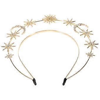 Golden Alloy Rhinestone Headband for Wedding Decorations Comfortable Double-layer Design 7 inches