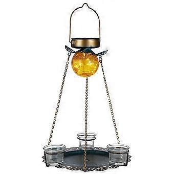 Golden Bird Feeder with Solar Light for Outdoor Use Durable Iron Vintage Style 1 Piece
