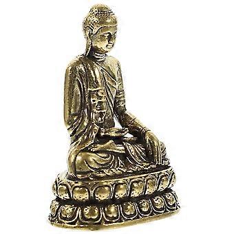 Golden Brass Buddha Figurine Decor Vintage Desktop Ornament Suitable For Various Spaces 1Pack