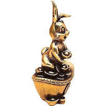 Golden Desktop Brass Rabbit Craft for Decor 2Pcs Vintage Style Ornament
