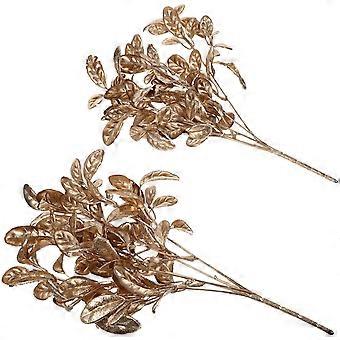 Golden Plastic Christmas Artificial Leaves for Decoration with High Simulation Effect 2 Pcs