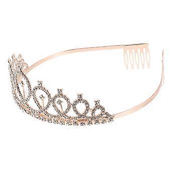 Golden Zinc Alloy Bride Crown for Wedding Decor with Detail and Lightweight Design Fits Most Heads Stably