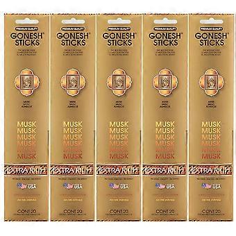 Gonesh Incense Sticks Extra Rich Collection - Musk 5 Packs (100 Total)