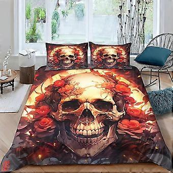 Gothic Skull Bedding Set 3D Comforter Cover, Kids Quilt Cover Set 3 Pcs with Zipper Closure, Soft Microfiber Double