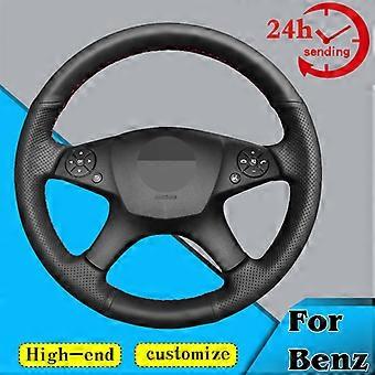 Car Steering Wheel Cover For Mercedes Benz C-Class W204 2007 - 2011interior parts Hand-stitched Black PU Artificial Leather