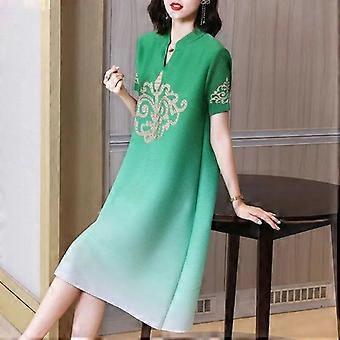 Gradient color new retro western-style summer pleated dress loose and age reducing A-line skirt
