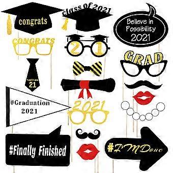 Graduation Selfie Props for Party Use with Wooden Sticks 18Pcs