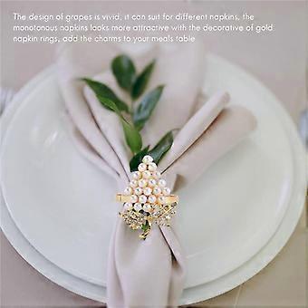 Grapes Napkin Rings Set of 6, with Glittering Imitation Diamond and Pearls Inlay Alloy Napkin Ring