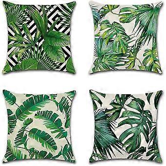 Green Plant Printed Pattern Cushion Cover Set Of 4 Cotton And Linen Breathable Cushion