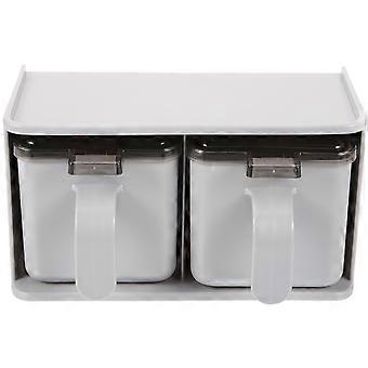 Grey Material Seasoning Box with Spoon for Kitchen Storage Use 7.87"x3.94"x5.51"