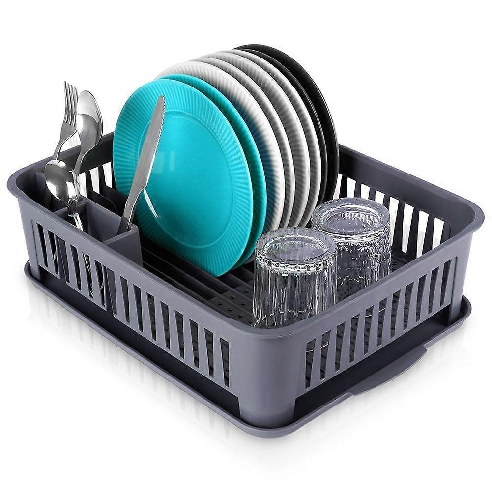 Grå Diskställ med Många Funktioner Detta gråa diskställ är perfekt för att organisera dina tallrikar, bestick, skålar, glas och muggar. Den avtagbara brickan gör rengöringen enkel och smidig.