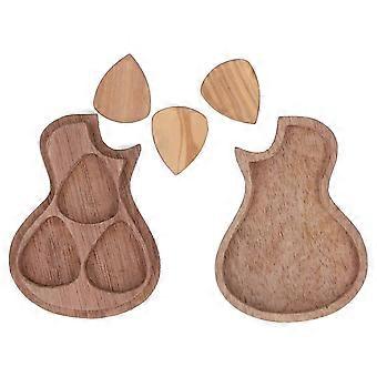 Guitar Pick Holder Box with 3 Wooden Picks Musical Instrument Accessory