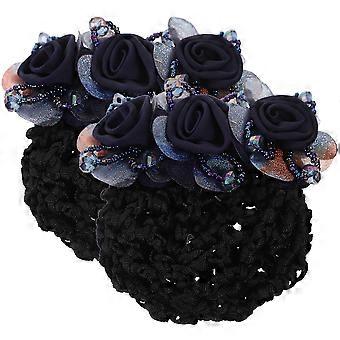 Flower Hairnet Clips Women Hair Bun Holder Accessories Dark Blue 10.00X9.50X3.00CM Neck Cooling 2Pcs